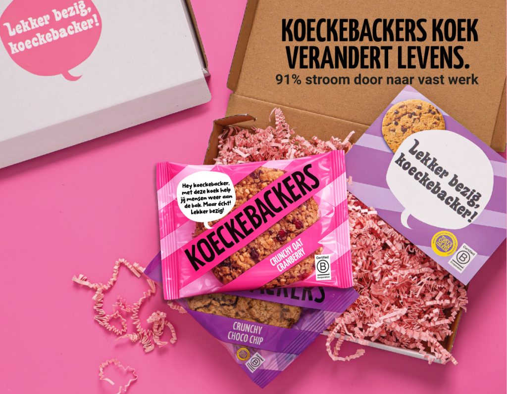Koeckebackers levert premium koeken met echte impact: 91% van de talenten stroomt binnen één jaar door naar werk. Met jouw inkoop creëer je banen en voldoe je aan je SROI-doelstellingen. Lekker bezig!